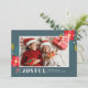 Modern illustrated poinsettia and berry floral cluster photo Christmas card.