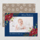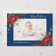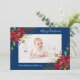 Poinsettia Floral Photo Navy Blue Christmas Holiday Card