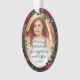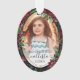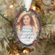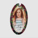 This cute and custom Christmas tree ornament is perfect for any doting grandparents. It features the phrase, "Proud grandparents of (First Name, Last Name)," on top of a burgundy red poinsettia floral, holly berry, and green ivy leaf watercolor, navy blue, and faux gold painted border with a white gradient overlaid on top of a personalised photograph of your grandchild. On the back is a place for a second photo. With this ornament, you customise an ornament for each of your grandchildren and have a special spot dedicated on the tree for each child. It's elegant, pretty, sweet, and special; the perfect way to celebrate your love for your grandkids.