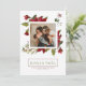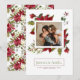 Poinsettia Joyeux Noël Elegant Floral Christmas Holiday Photo card from Ricaso - designed with Joyeux Noël text in a box to the front - this elegant classy red poinsettia floral design in green, red and white is sure to be a hit with family and friends .. easy to add your own text and photo - Send your greetings in style this holiday with a personalised card with a beautiful watercolor winter flower- also available in a range of coordinating products from the Poinsettia Joyeux Noël range