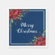 Poinsettia Navy Blue Merry Christmas Holiday Napkin