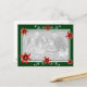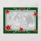 This Christmas card has you family photo surrounded with a double green frame. The frame is accented with poinsettias of varying sizes, and it has two white swirls on the top and bottom for extra flair. Complete with custom greeting and closing this is the perfect Christmas card for your family this holiday season.