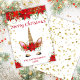Christmas Poinsettia Unicorn card in red for a festive Holiday party.