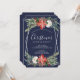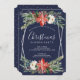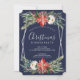 Elegant watercolors festive Christmas bouquet border with coral-red poinsettia and white roses bouquet, custom dinner invitation.