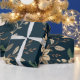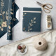 Winter Blooms: A delicate wreath of cream-coloured flowers and leaves whispers elegance against a deep navy background. This design captures the serene beauty of winter, perfect for adding a touch of sophistication to your holiday gifts or decor.