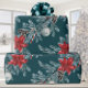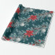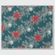 Poinsettias Christmas Blue Spruce Garland Teal Wrapping Paper