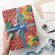 Bold red and gold poinsettias and leaves wrapping paper is a fun design for holiday gift giving. MATCHING items in our store.