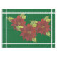 This pretty holiday tablecloth features a green background that you can change to any colour you want easily before ordering! Lovely at the table all season long, the centre has three beautiful red poinsettias on a green background with white trim on all four sides.
