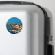 Scenic magnet features daylight photograph of the coastline and famous Point Arena Lighthouse, Mendocino County, California - on black background.