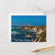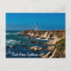 Beautiful postcard features scenic daylight photograph of the coastline and famous Point Arena Lighthouse, Mendocino County, California.