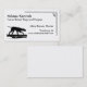 A simple black and white business card design featuring a silhouette of a Pointer hunting in the field, his silhouette reflected under him, with a geometric pattern border in the corner.