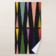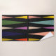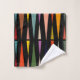 This towel set has a mid-century modern design of triangles facing each other repeating across the design.