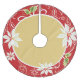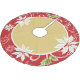 Red, holiday snowflakes, and stripes are the background for this chic, classy, Christmas tree skirt. This adds an elegant finishing touch for your special Christmas tree.