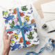 The wrapping paper's design features an image of several colourful poison arrow frogs illustrated by artist Dawn Witherington.