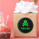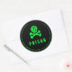 Black and green skull and cross bones on round sticker. Large size great for halloween bar; stick on your wine bottles or other alcohol bottles for a halloween theme. More Colours available.