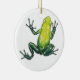 The ornament's front and back design depicts a poison dart frog illustrated by artist Dawn Witherington