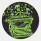 Trade up from a poison pen and get yourself a poison typewriter. This vintage image of a typewriter is coloured in green with skulls coming out of it.