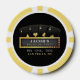 Black and gold poker themed bachelor party poker chips with four aces and marquee sign. Personalise it with your event details.
