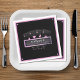 Black and pink poker themed bachelorette party napkins with four aces and marquee sign. Personalise it with the bride's event details.