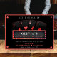 Black and red poker themed 21st birthday party invitation with four aces and marquee sign. Personalise it with your event details.