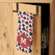 This cool, poker inspired kitchen towel has a background pattern made of playing card suits (spades, clovers, hearts, diamonds). A black ribbon graphic runs across both edges, with a red diamond where you can add your initial in white (change the template and it will change on both diamonds). This is the perfect classy, custom towel for an expert card game player, whether your game be Poker, Euchre, Bridge, Blackjack or any other card game.