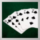 Five playing cards forming the poker straight flush hand. A straigh flush is a hand that contains five cards in sequence, all of the same suit. This is the spades suit straight flush.