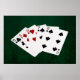 Five playing cards forming the poker straight hand. A straight is a poker hand, wheres all five cards of sequential rank in at least two different suits. Two straights are ranked by comparing the highest card of each. Two straights with the same high card are of equal value, suits are not used to separate them. This is the ten to six straight hand.