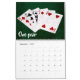 Poker hands one of a kind, funny, customisable calendar of 12 pages. Artistic images of poker hands combinations, including dead man's hand. All the card combinations go from the highest to lowest rank. Good luck and always win image at the end. You can change all the text and even all the images. Let the Luck be with you!
