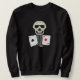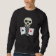 Smartly dressed and confident skeleton poker player holds up a pair of aces in this cool poker design.