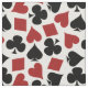 This poker inspired craft fabric has a seamless pattern made of playing card deck suits. Spades, clovers, hearts and diamonds fit together in black and red on a white background. This fabric will look great in your game room if you love any type of card game, from poker to euchre, bridge, whist or blackjack.