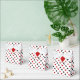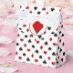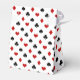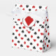 This Poker inspired playing card themed design features a repeating pattern of red and black diamonds, clubs, hearts, and spades. A white circle with a red diamond adorns the centre of the top flap.