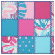 Hibiscus, birds of paradise and lots of dots are just some of the patterns featured in this tropical patchwork textile print. There are other home decorating items in the same design. The pattern comes in several colorways.