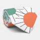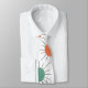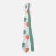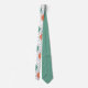 This necktie has a mid-century modern design of circles with lines behind in orange and green.