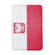 This rug is just as pictured! Vibrant Red and very soft material, nice to step in out of the tub! Matches my set of accessories and shower curtain! A must have to add some whimsy to your bathroom! Very nice, vibrant and clear print! Beautiful!