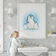 Cool off with this adorable penguin family kids bathroom wall art featuring cozy towels, bubbles, and icy blue tones.