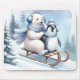Polar Bear and Penguin On a Sled Mouse Pad