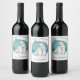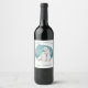 This gift wine bottle label features a stunning watercolor image of a polar bear sitting in the snow on a snowy blue night. Predominant colours are blue, teal, grey, and white. Torn ragged edges around the image add extra interest. Your custom text is in matching blue above the image, and in black below the image.