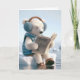A polar bear wearing blue earmuffs and a vest sits on a floating piece of ice while reading a newspaper titled "Polar News."