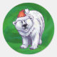 Polar Bear Christmas On Green Classic Round Sticker