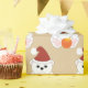 Cute illustration of white polar bear with big paws, Santa hat and orange Christmas ornament.