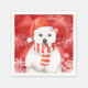 Fun and festive, this design features a polar bear in a festive bright red Santa Hat and white and red striped scarf, against a bright red backdrop with a magical swirl of snowflakes around him and snowflakes falling behind.