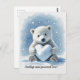 Polar bear in the snow with heart shaped snowball postcard