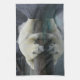 Polar Bear Kitchen Dish Towel Home Decor. Picture of polar bear beside a pond kitchen towel. Reflections of polar bear on water picture design kitchen dish towel design.