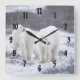 Two beautiful arctic polar bears on this wonderful square wall clock. Also available in round as well.