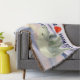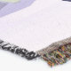 A quality printed throw has its advantages. This is a much finer weave throw than its loopier cousins, and though lighter, it is worth the investment for custom room accessorizing. The back is much prettier than the typical brown, and the fringe on the long sides very vivid, the selvage nicely done. Before photographing, I washed the throw in cold water, delicate, with a thicker woven throw the same size. On tumble dry low, this throw was dry in half the time as the other. This is a very practical quality if you use throws for furniture covers or to wrap up in frequently. The sleekness of the fabric makes it a great layer for accenting or protecting without the feeling of sitting on too much stuff. Perfect for napping or when you feel a light chill coming on. The color printing is beautiful and on this fabric, matched the design and color of my Photoshop image. This is an advantage for blending room fabrics and colors. The fringe on the short sides prints the colors from the design image and therefore varies from the side fringe. I streaked a white fractal line through the plaid pattern to give the illusion of weaving. This printed as crisp as an illusory thread, and put some white in the short side fringe, showing another advantage of print vs loomed- for artistic purposes, line lines, detail, and color integrity can be planned and preserved. My loomed throws have color limitations and more of a needlepoint texture. Print throws reproduce an exact image. The throw felt a little stiff straight out of the package, but this went away in the first delicate wash. Of course I searched the wash water for ink or bleeding and there was none.