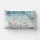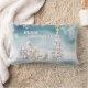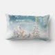 Our favourite pillow - a comfy lumbar pillow - with an adorable Christmas theme, a trio of polar bears, decked out in Winter accessories and ready to celebrate Christmas in the snow, next to a Christmas tree with the words Merry Christmas in bold font.