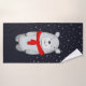 Cute fun polar bear winter bath towel. Customise it with your chosen name. Makes a great gift for winter birthday or for Christmas.