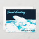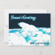 A somewhat stylised, blue-toned image of a Polar Bear (Ursus maritimus) resting on the polar ice pack on on a dark, moonlit winter night. Text reading, "Season's Greetings" appears in glowing blue and white. Add your own additional text.