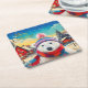Polar Bear Santa hat and scarf Merry Christmas Square Paper Coaster