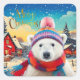 Polar Bear Santa hat and scarf Merry Christmas Square Sticker